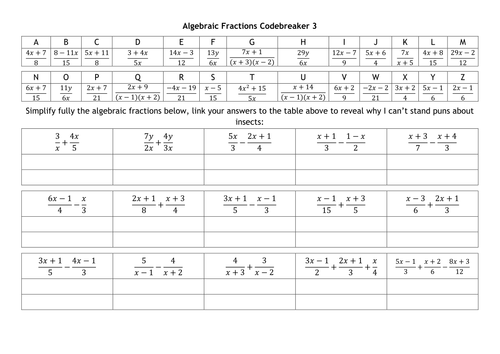 Adding Algebraic Fractions And Solving Equations With Algebraic Fractions Worksheets With Solutions Teaching Resources